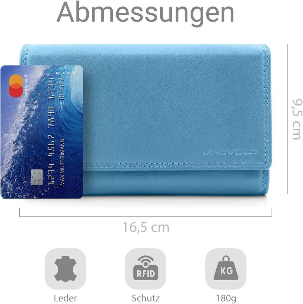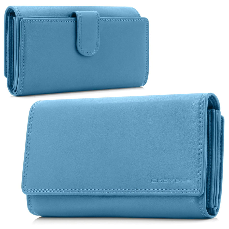 ekavale Damen-geldbörse XXL aus Rindsleder mit RFID Leder-Geldbörse mit vielen Fächern für Frau Blau