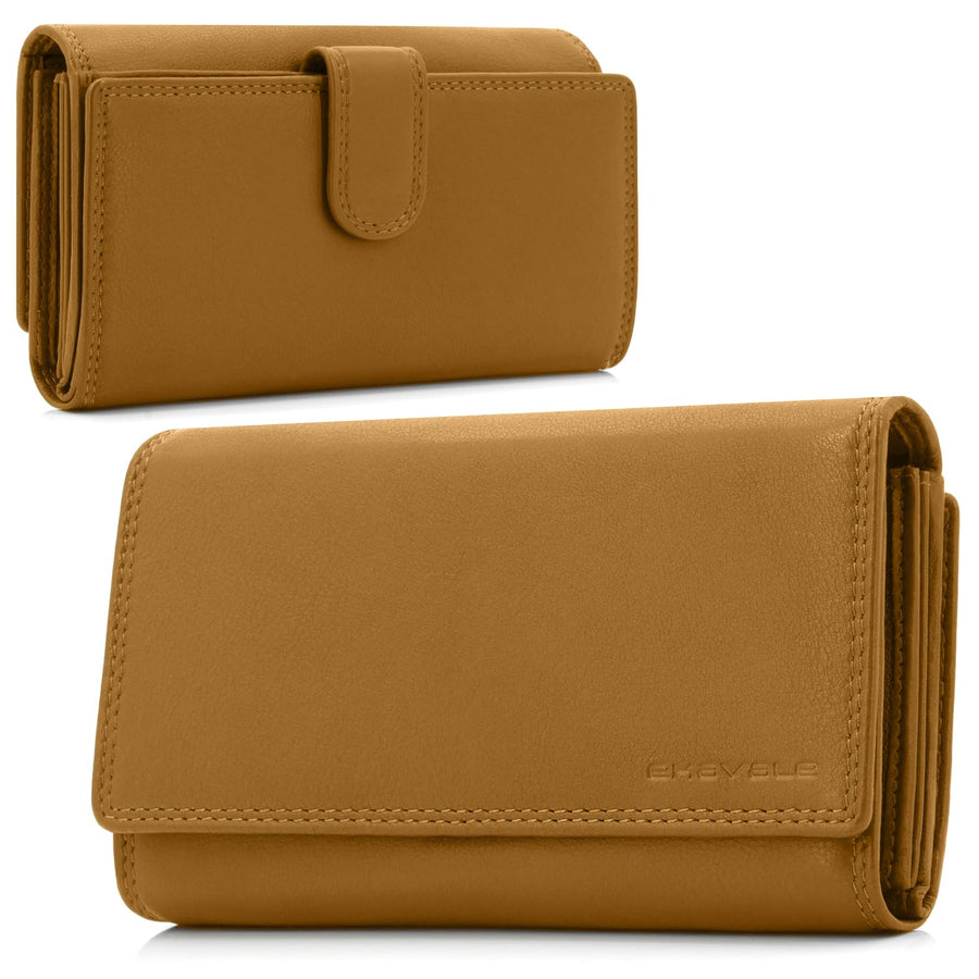 ekavale Damen-geldbörse XXL aus Rindsleder mit RFID Leder-Geldbörse mit vielen Fächern für Frau (Cur