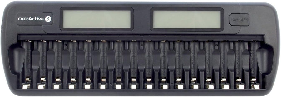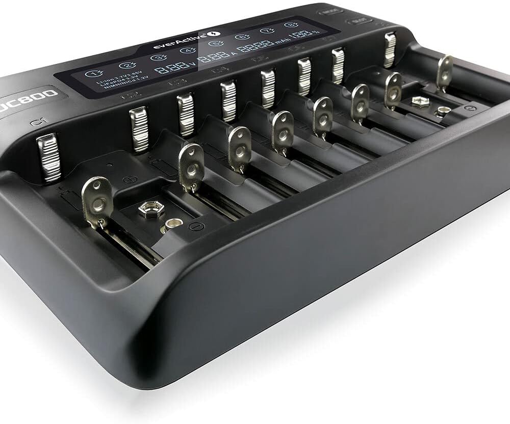 everActive Ladegerät für 8 Akkus AAA AA C D 9V, universal und schnell, vollautomatisch, LCD mit proz
