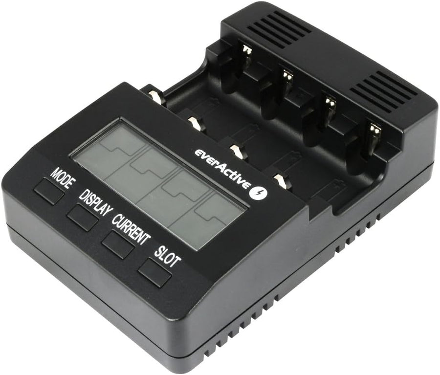 everActive Ladegerät für 4 Akkus 18650 AAA AA C D, professionell und schnell, grosse LCD-Anzeige, Ka