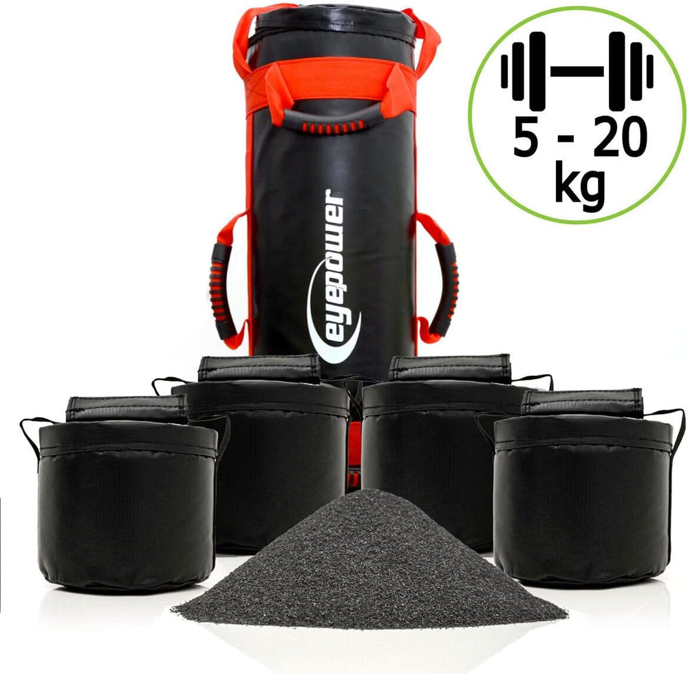 eyepower 20kg Profi Power Bag + 4 Wasserdichte Kettlebell Gewichte mit Eisensand - Besser als Geräte