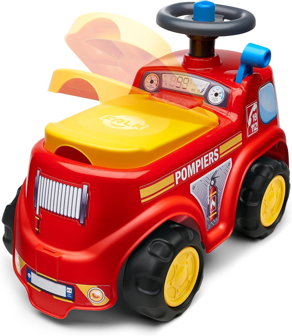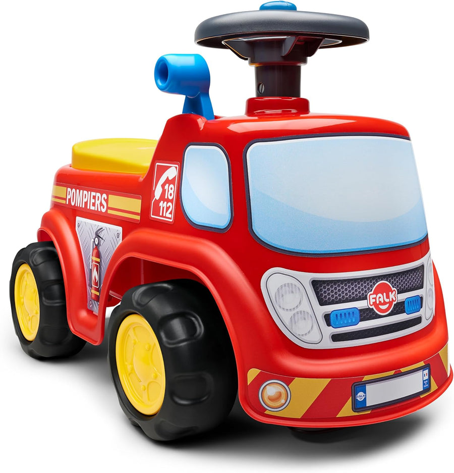 Falk Träger Feuerwehrauto ab 12 Monaten, Lenkrad, mit Hupe, Hebel mit Soundeffekt, Aufbewahrungsbox,