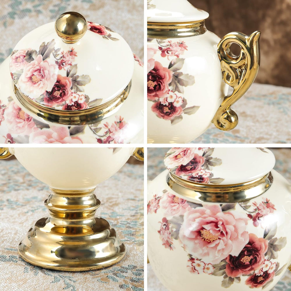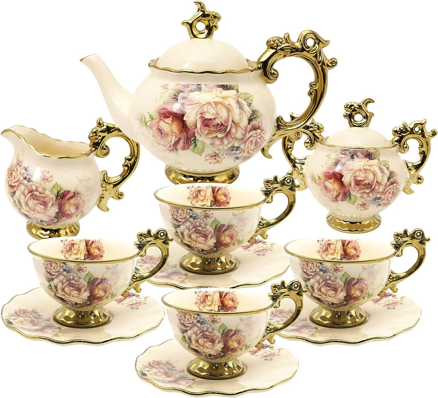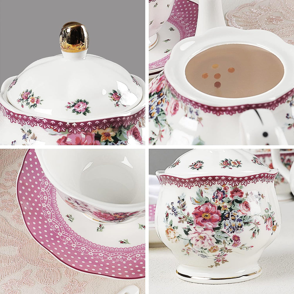 fanquare 15 Stück Rose Blumen Englische Keramik Tee Sets, Vintage China Kaffee Set, Tee Service für