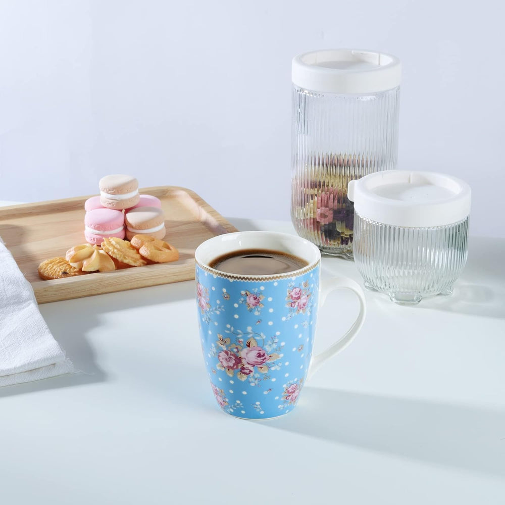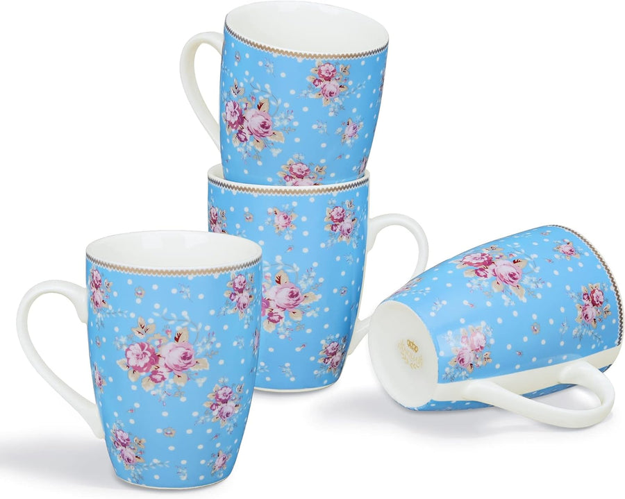 fanquare 350ml Blumen Porzellan Kaffeebecher mit Henkel, Blau und Weiss Teetassen, Tassen für Heisse