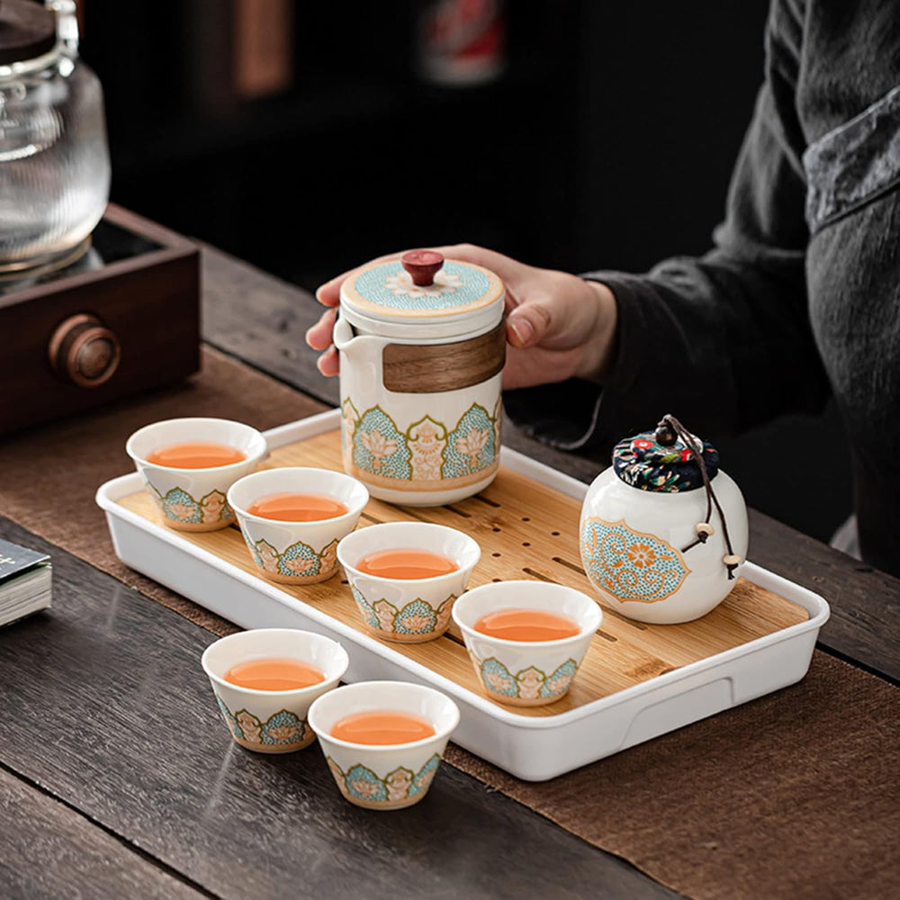 fanquare Chinesisches Keramik Kung Fu Tee Set mit Teetablett und Kleine Teewerkzeuge, Porzellan Tee