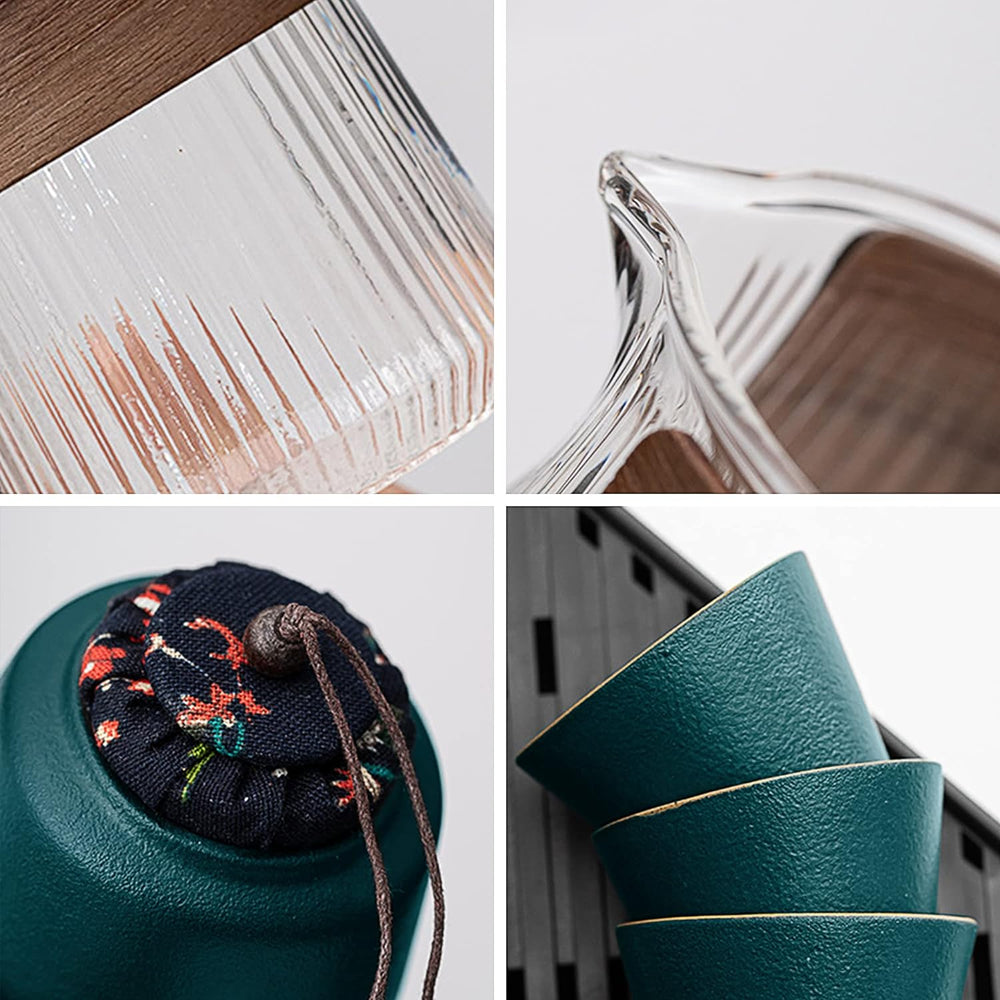 fanquare Japanisches Tragbare Reise Tee Set für Erwachsene, Grün Chinesisches Tee Set aus Porzellan,