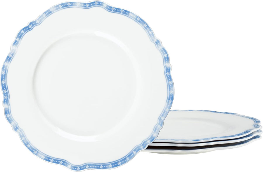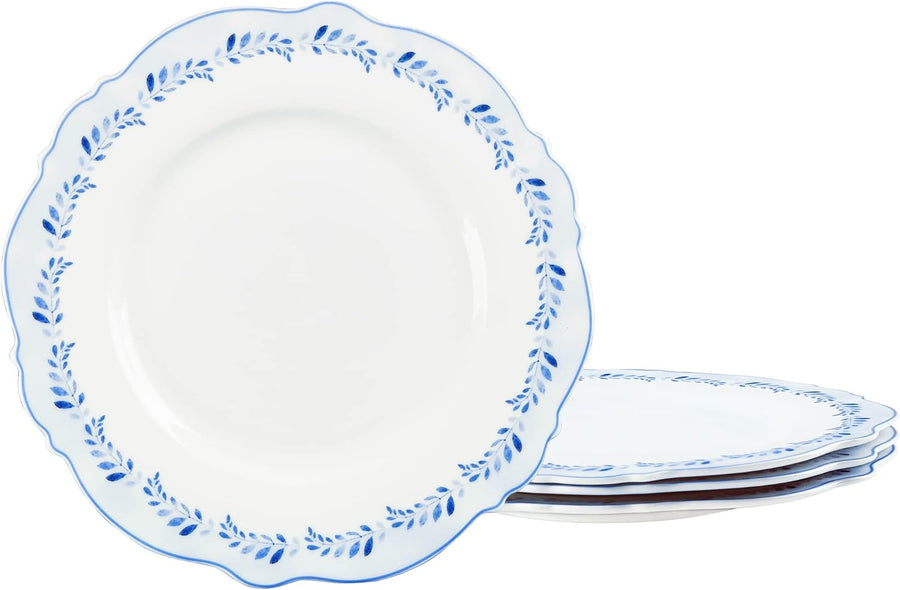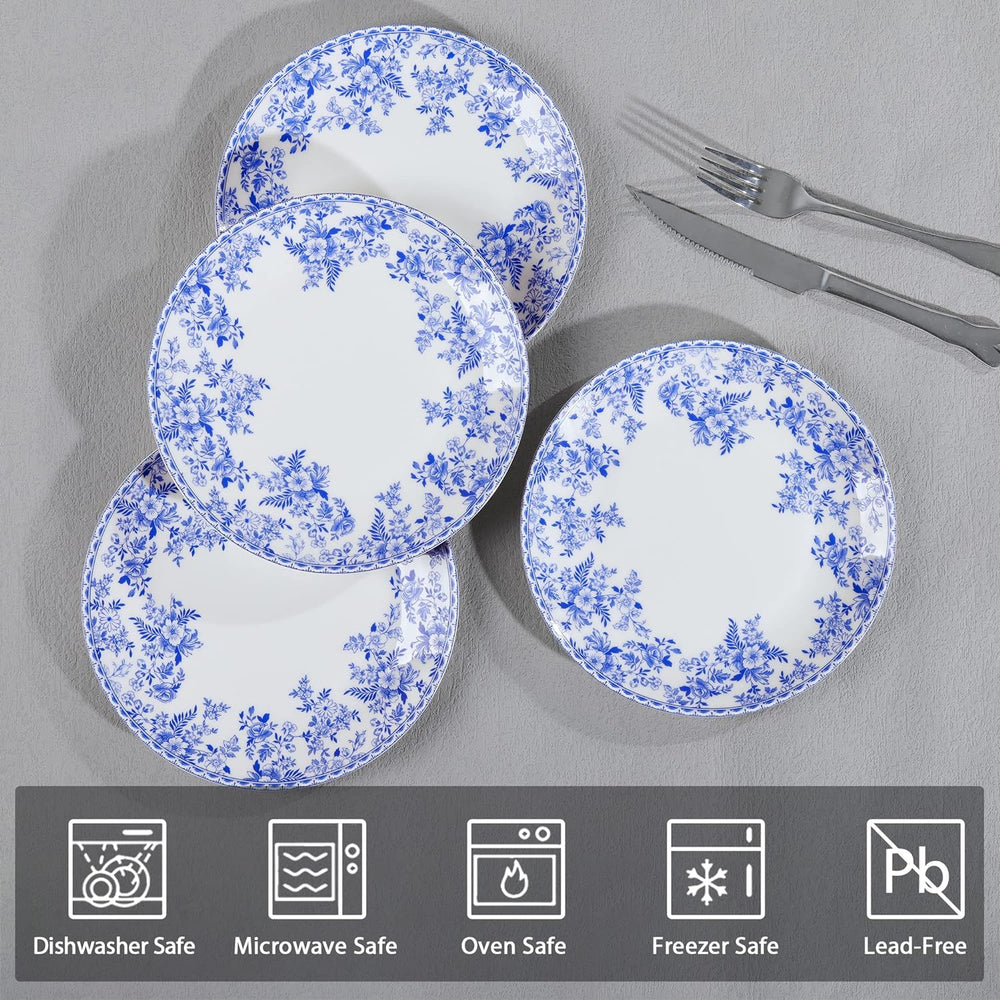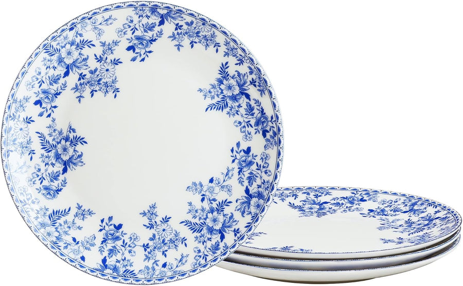 fanquare 4 Stück Blau und Weiss Porzellan Speiseteller Set Ø 275 mm Frühling Blumen Geschirrset, Vin