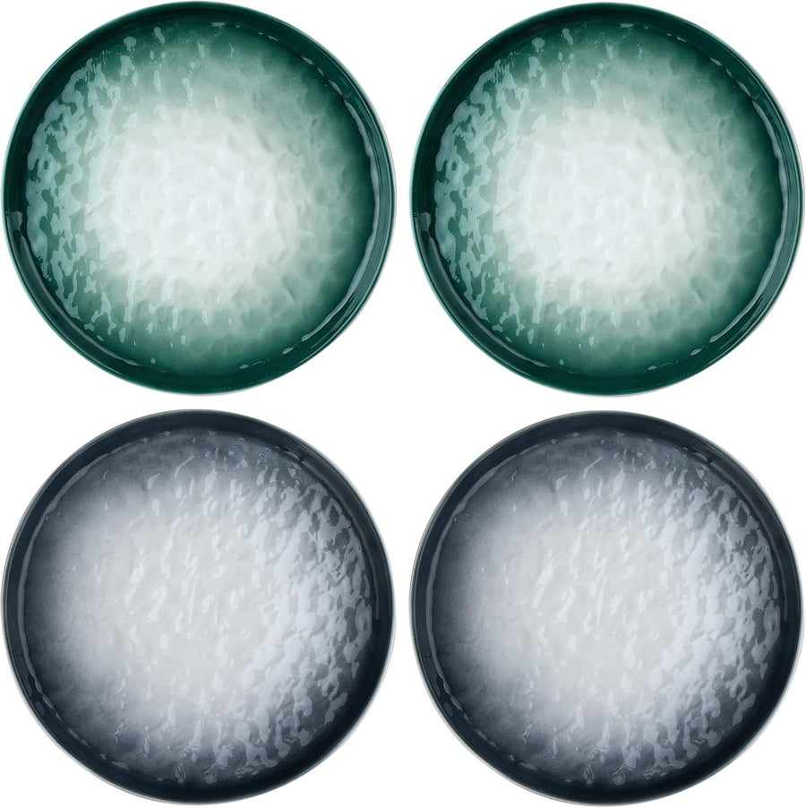 fanquare 20cm Porzellan Dessertteller, Blaue Wasserwelle Salatteller, Vorspeisenteller 4er Set, Mikr