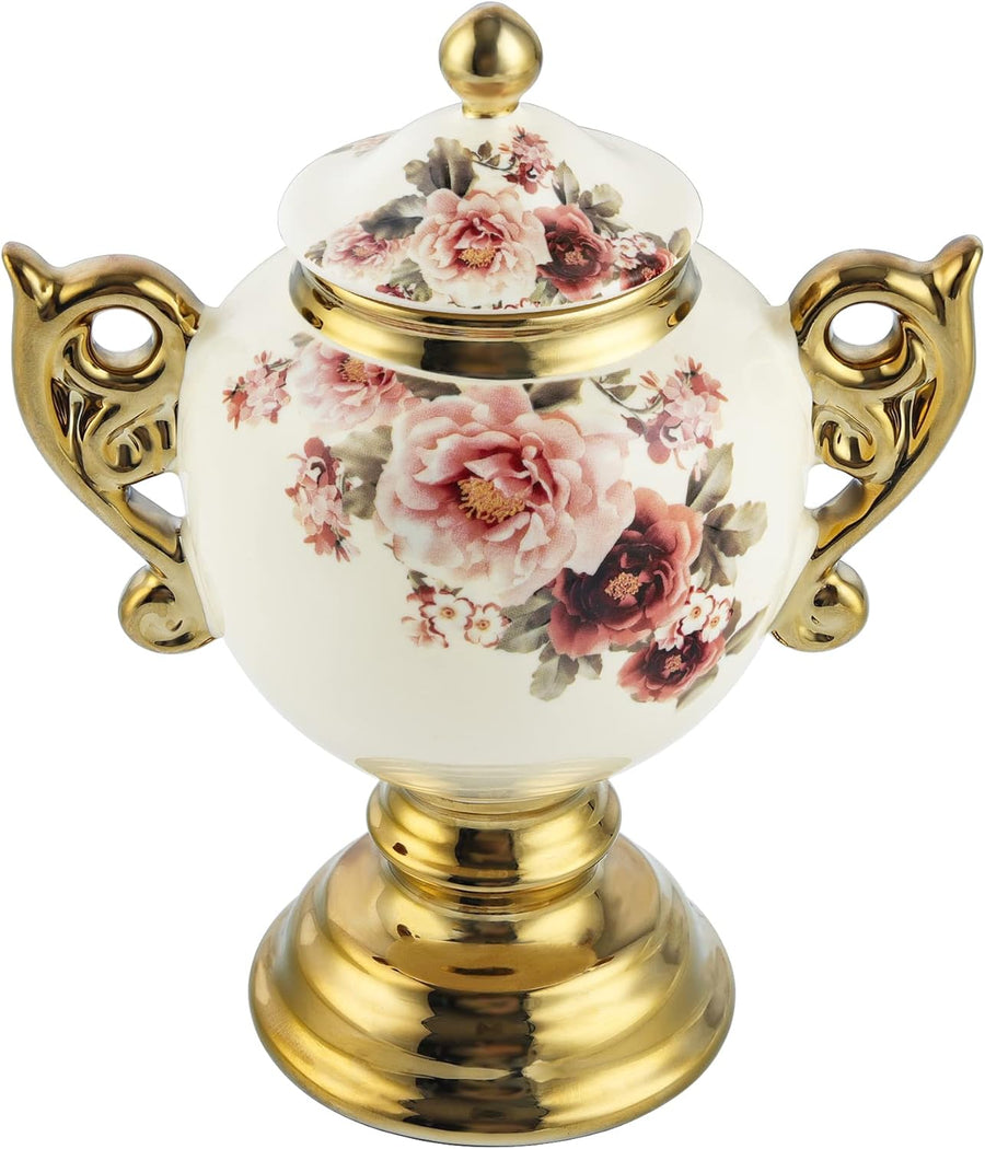 fanquare 450ml Blumen Keramik Vorratsdosen mit Deckel, Goldene Aufbewahrungsdose, Dekoration Porzell