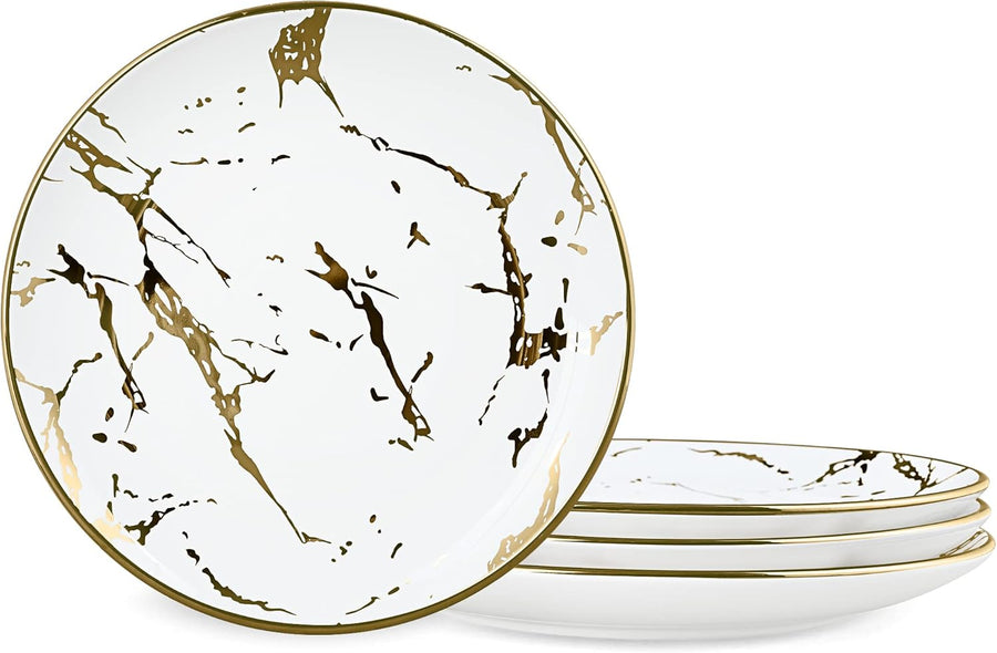 fanquare 25cm Gold Marmor Speiseteller Set für 4 Personen, Speiseteller Porzellan Grosse, Geschirrse