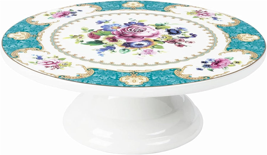 10 Zoll Blumen Porzellan Kuchenständer, Blaue Runde Kuchenplatte mit Goldrand, Dessert Dekorieren Ve