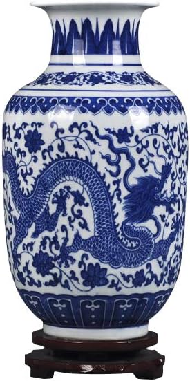 fanquare Jingdezhen Blau und Weiss Porzellan Blumenvase, Kleine Handgemachte Drachen Keramik Vase, D