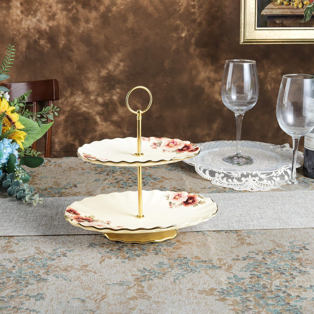 fanquare 2 Stöckig Gold Etagère aus Keramik, Porzellan Tortenständer, Obst und Cupcake Ständer, Serv