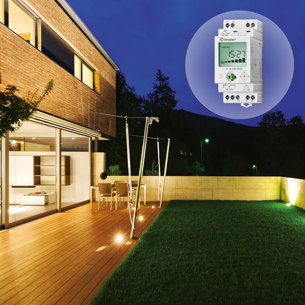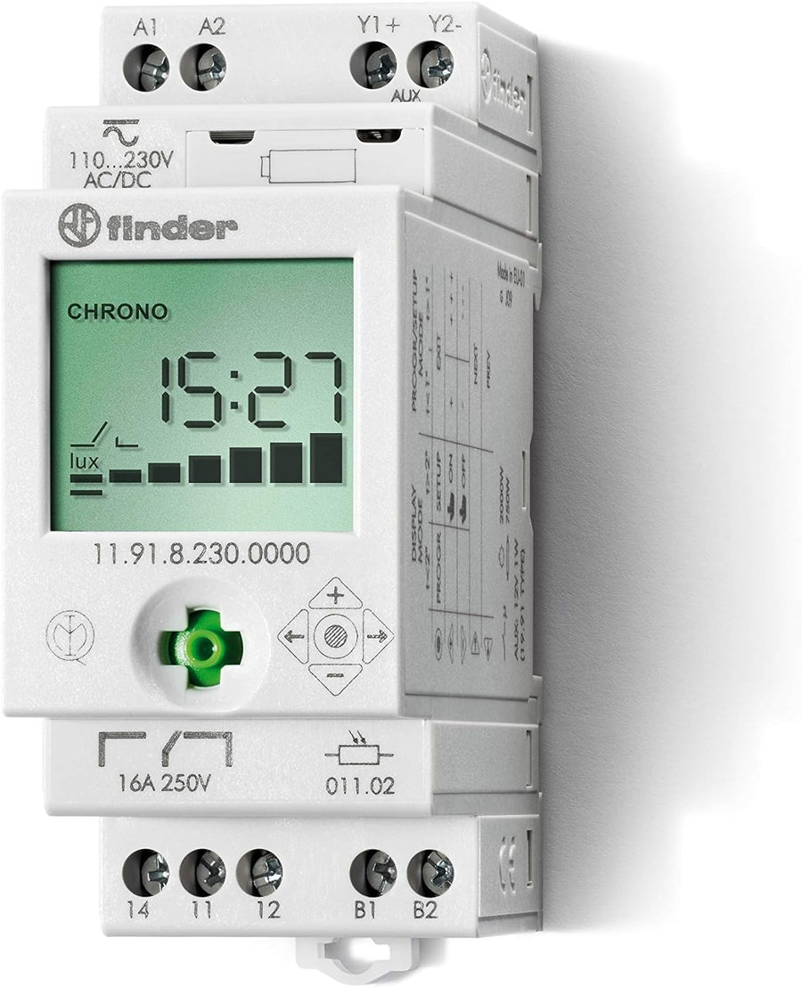 Finder 119182300000PAS Dämmerungsschalter mit Zeitschaltuhr, 230 VAC, Wechsler 16 A, AUX-Ausgang