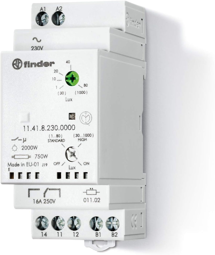 Finder 113182300000PAS Dämmerungsschalter, 1 Schliesser, 16 A, 110 A, 230 VAC, geringe Breite, 17,5