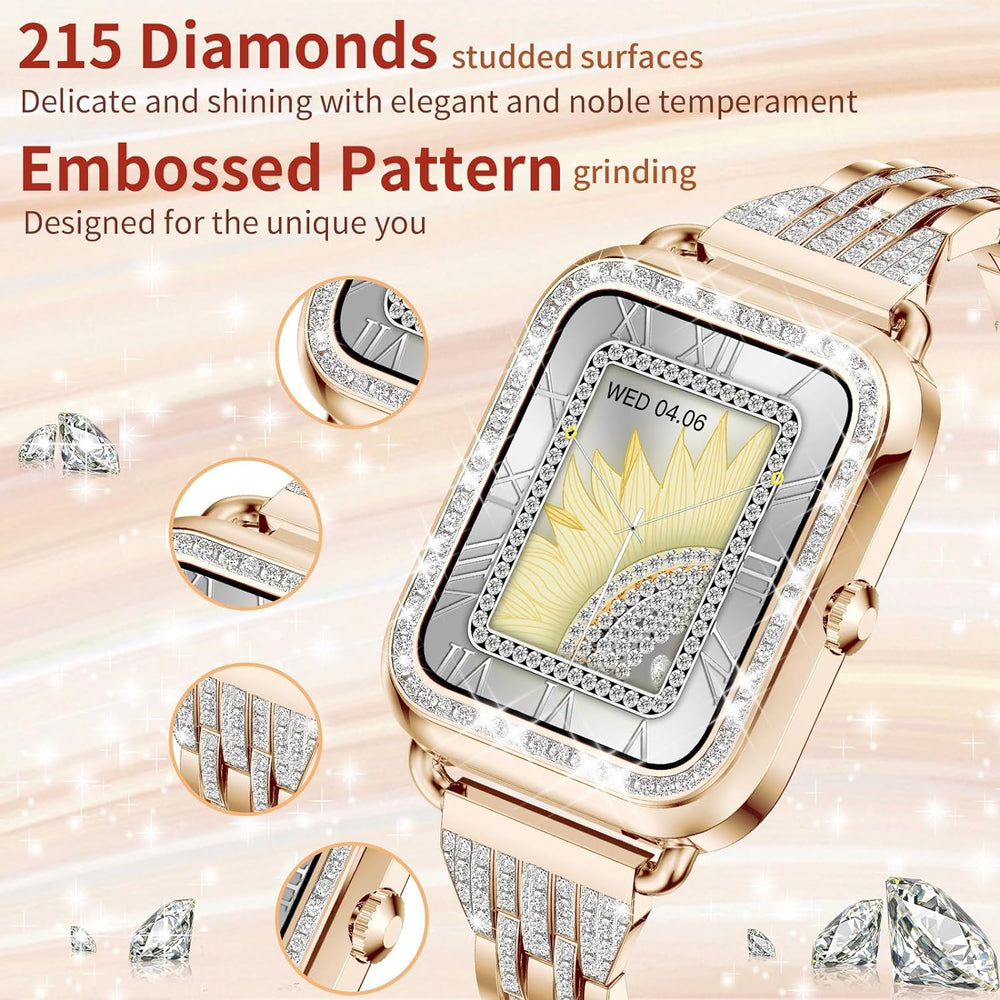 Smartwatch Damen mit Telefonfunktion Diamond, 1.32" Damenuhr mit Anruffunktion ,Menstruationszyklus