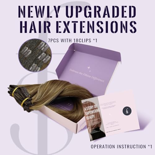 Fshine Clip In Haarverlängerungen Echtes Menschenhaar Mittelbraun und Karamellblond Highlights Clip