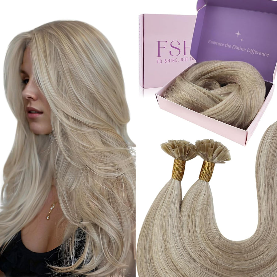 Fshine 1g Bondings Echthaar Extensions 50cm Highlight Aschblond Mit Bleiche Blonde UTip Echthaar Haa