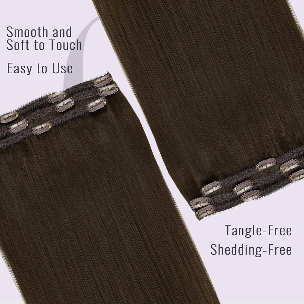 Fshine Extensions Echthaar Clip 55cm Dunkelstes Braun 120 Gramm Clip in Extensions Doppelt WeftRemy