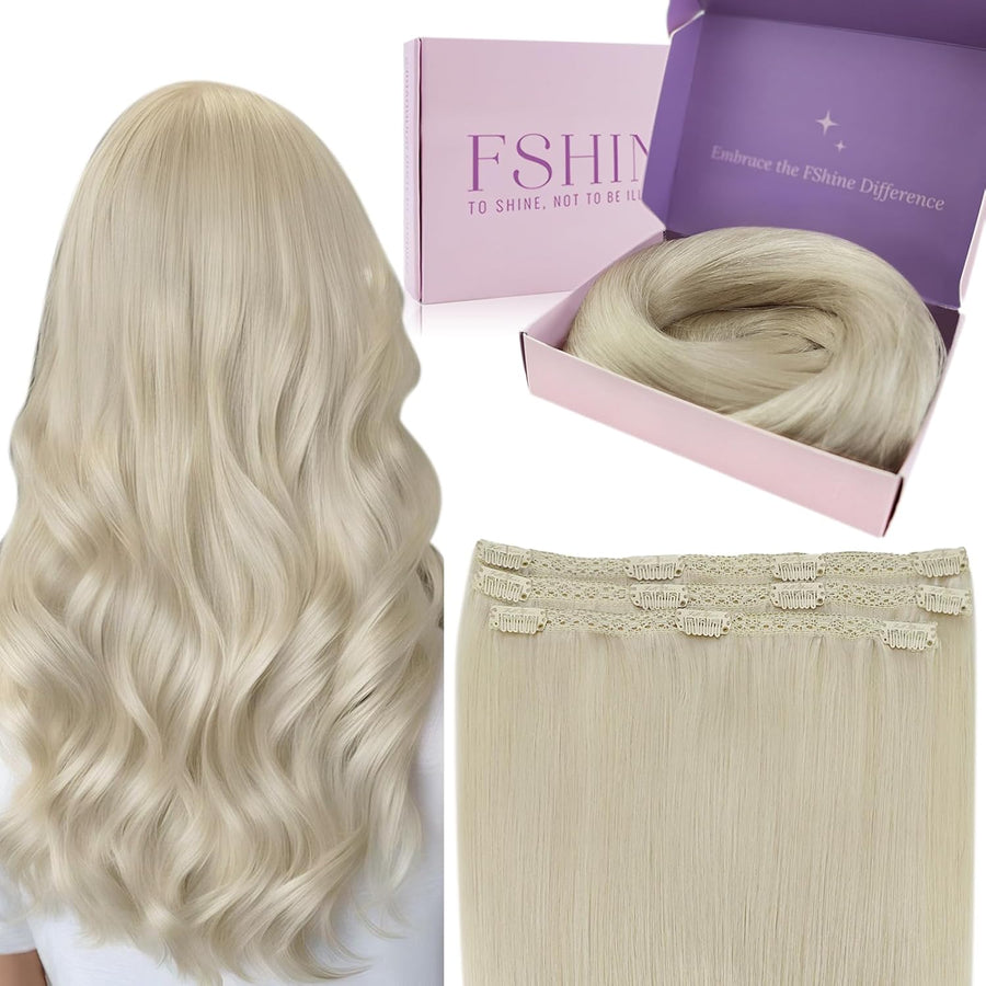 Fshine Invisible Clip in Extensions Echthaar Blond Hair Extensions Clip in Echthaar Weissblond 30cm