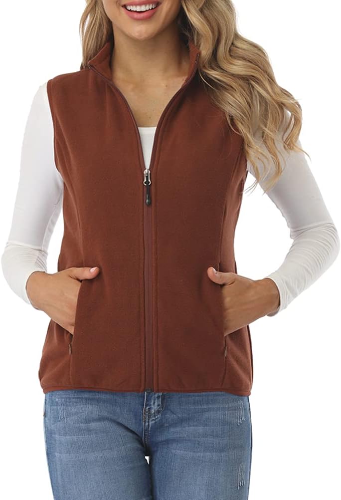 fuinloth Damen Weste Ärmellose Fleeceweste Leicht Stehkragen Weste mit Reissverschlusstaschen S Scho