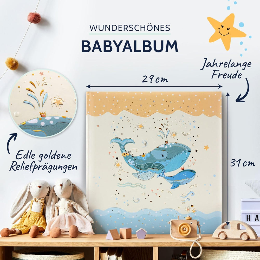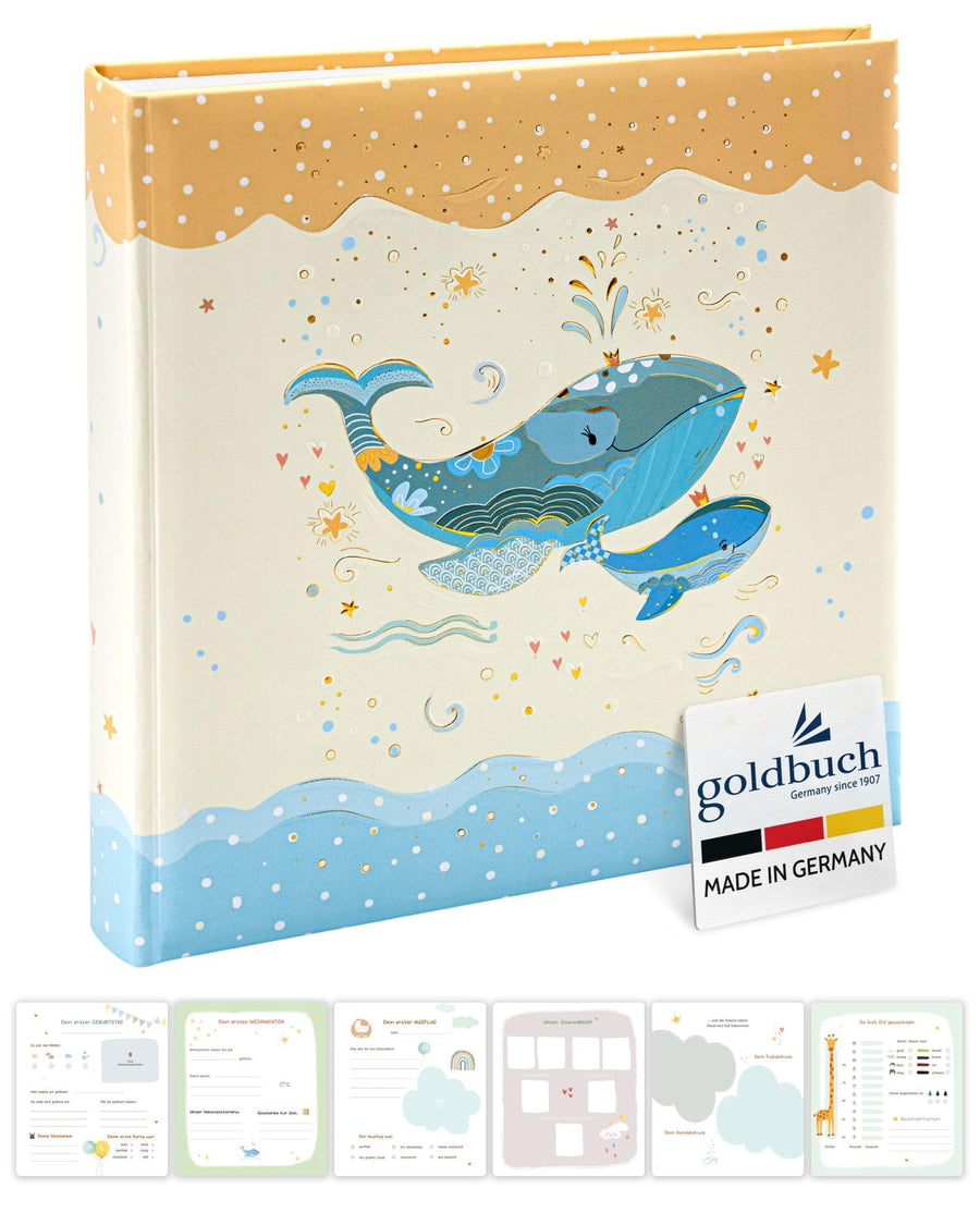 goldbuch 15 395 Babyalbum Blue Whale, Babybuch 30 x 31 x 4 cm, Fotoalbum mit 58 weissen Blankoseiten