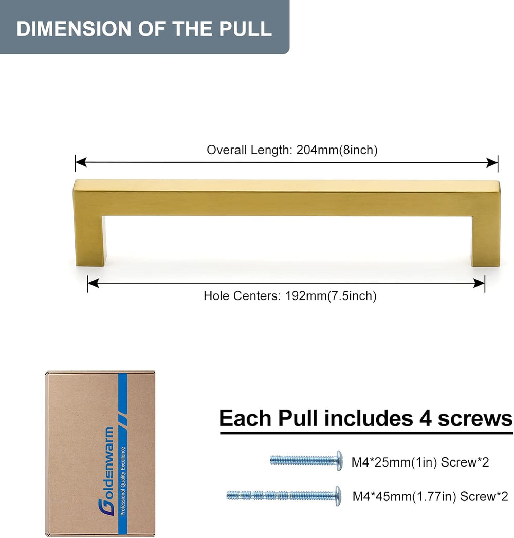 10 Stück goldenwarm Möbelgriffe Gold Griffe Küche Gold Möbelgriffe Edelstahl 192mm -LSJ12GD192 Griff