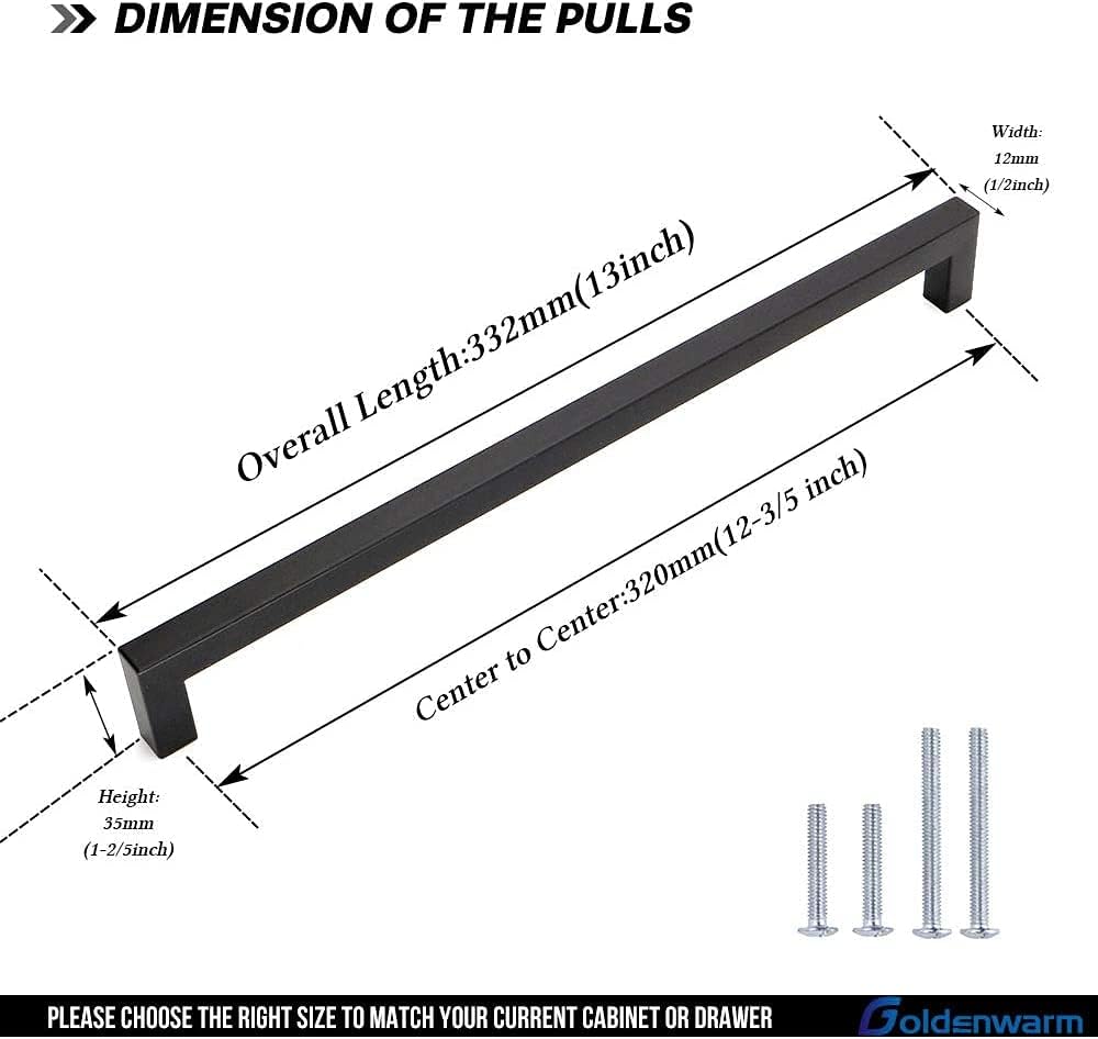 goldenwarm 15 Stück Griffe Möbelgriff Edelstahl Stangengriff LSJ12BK320 Bohrlochabstand 320mm Küchen