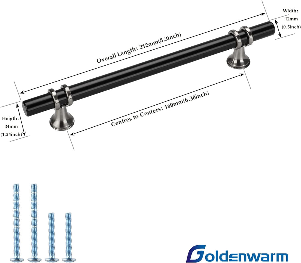 goldenwarm 10 Stück Möbelgriffe Schwarz Küchengriffe Edelstahl Sliver&Schwarz Küche Schrankgriffe 12