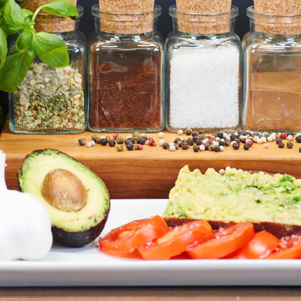 gouveo 24er Set Gewürzgläser 120 ml hoch eckig mit Korken - Kleine Korkengläser mit Korkverschluss -
