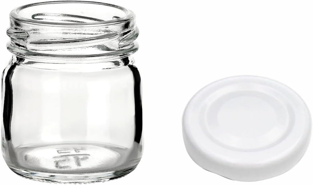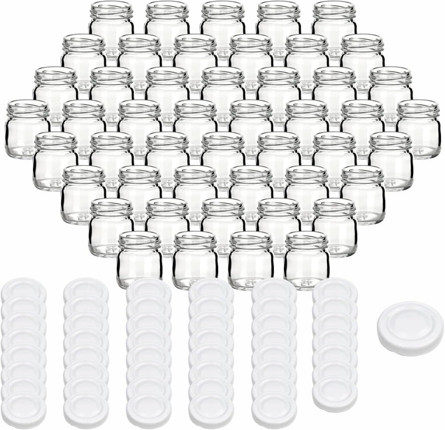 gouveo 48er Set Einmachgläser 40 ml Mini mit Schraub-Deckel weiss - Mini Vorratsgläser mit Drehversc