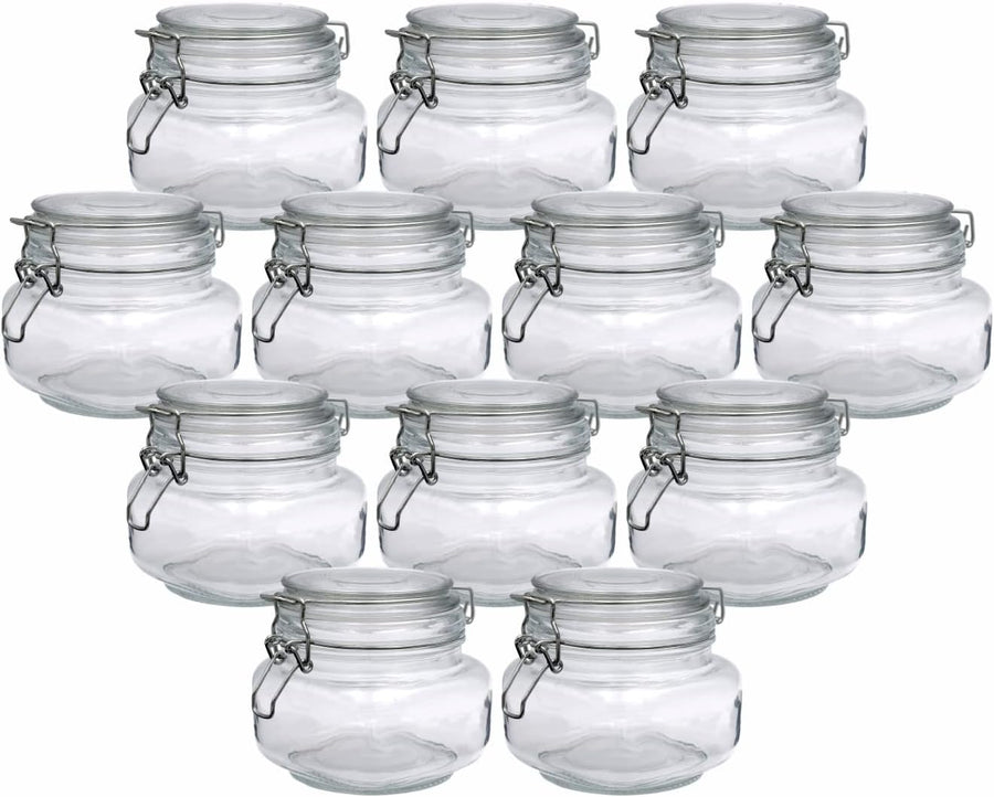 gouveo 12er Set Vorratsgläser 500 ml eckig mit Bügelverschluss - Bügelgläser aus Glas mit Drahtbügel