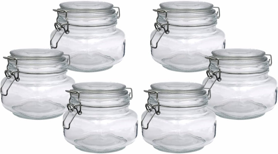 gouveo 6er Set Vorratsgläser 500 ml eckig mit Bügelverschluss - Bügelgläser aus Glas mit Drahtbügelv