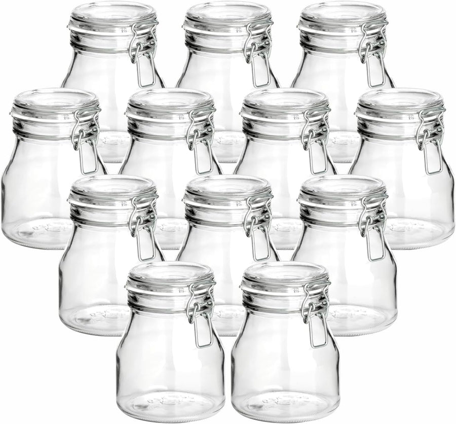 gouveo 12er Set Einmachglas 750 ml rund mit Bügelverschluss weiss - Vorratsdosen aus Glas mit Drahtb