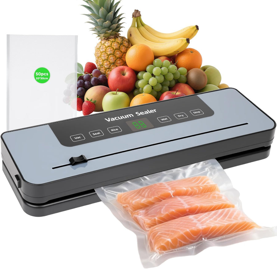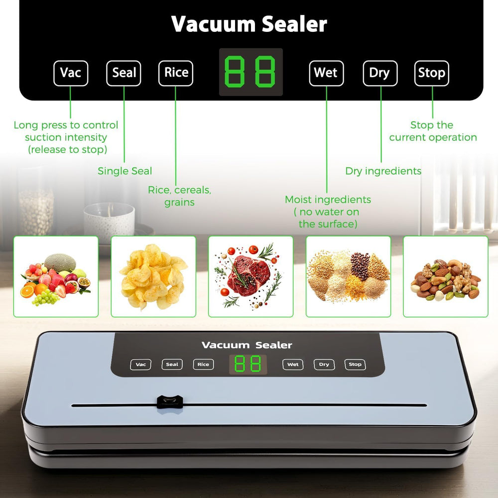 Vakuumiergerät, Vakuumierer mit 50 Vakuumierbeutel, Folienschweissgerät für Lebensmittel mit Cutter