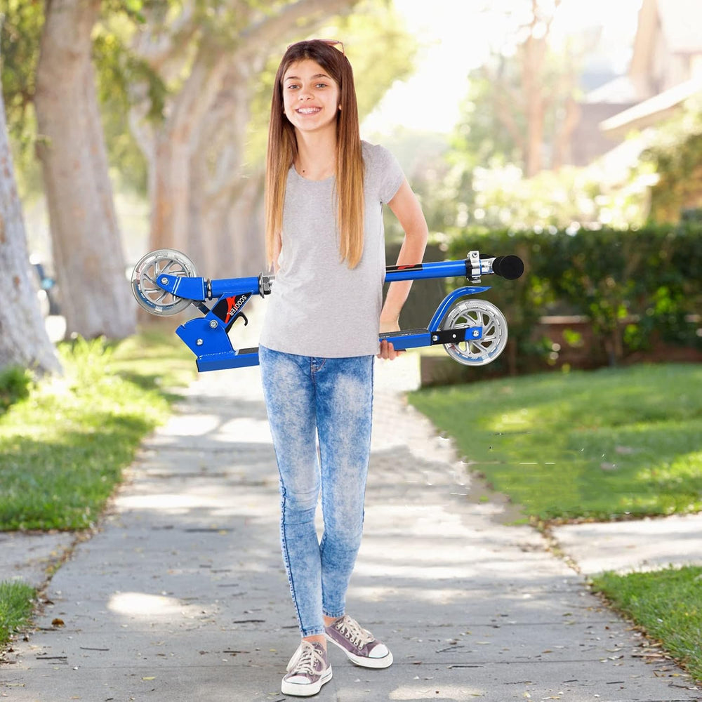 GYMAX Faltbare Kindersooter, Kinder Roller mit LED leuchtenden Räder, Tretroller 3 höhenverstellbar