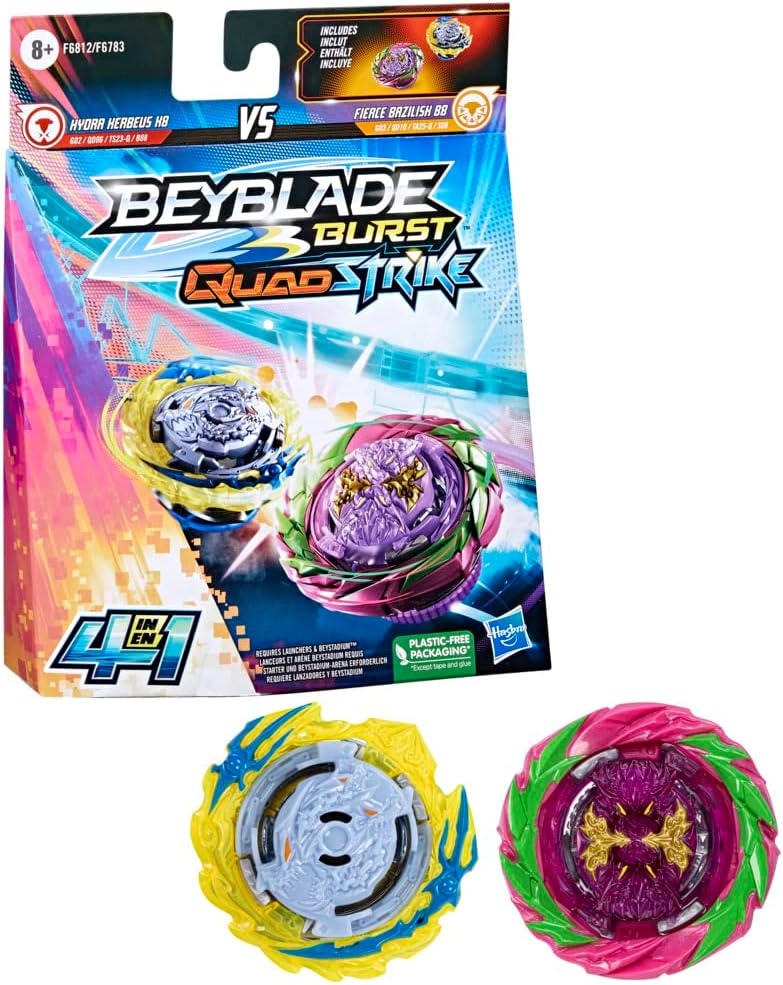 Beyblade Burst QuadStrike Fierce Bazilisk B8 und Hydra Kerbeus K8 Kreisel Doppelpack, Battle Kreisel