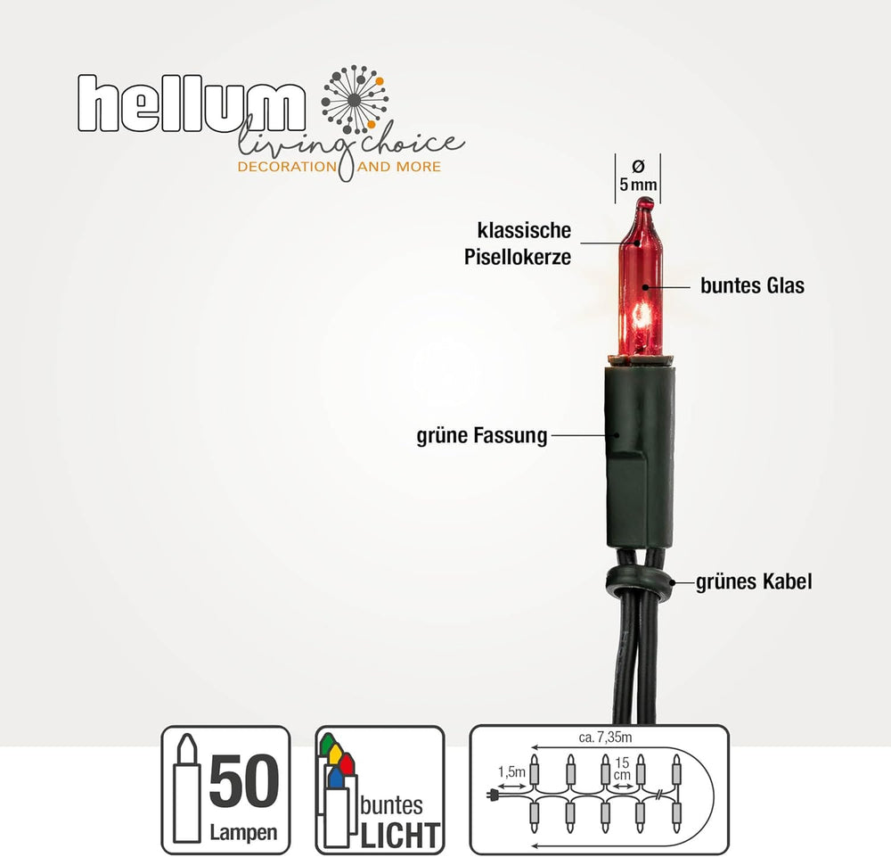 hellum Lichterkette innen mit 50 LED, mini Lichterkette bunte Lichter beleuchtete 7,35m, Lichterkett