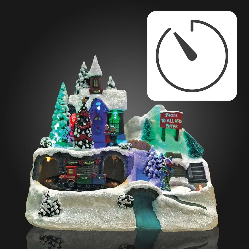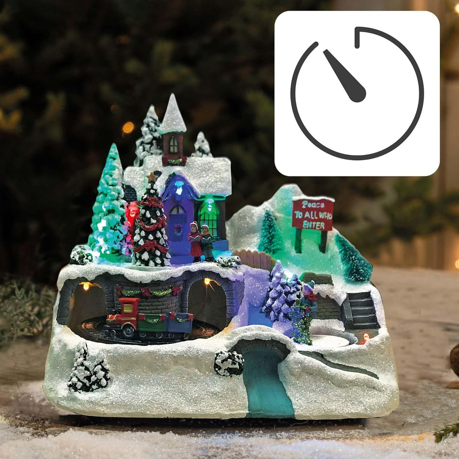 hellum LED Weihnachtsdorf mit Zug, Weihnachtsdorf mit Beleuchtung im Fiberoptikstil, batteriebetrieb