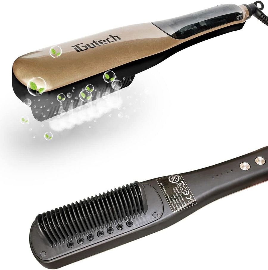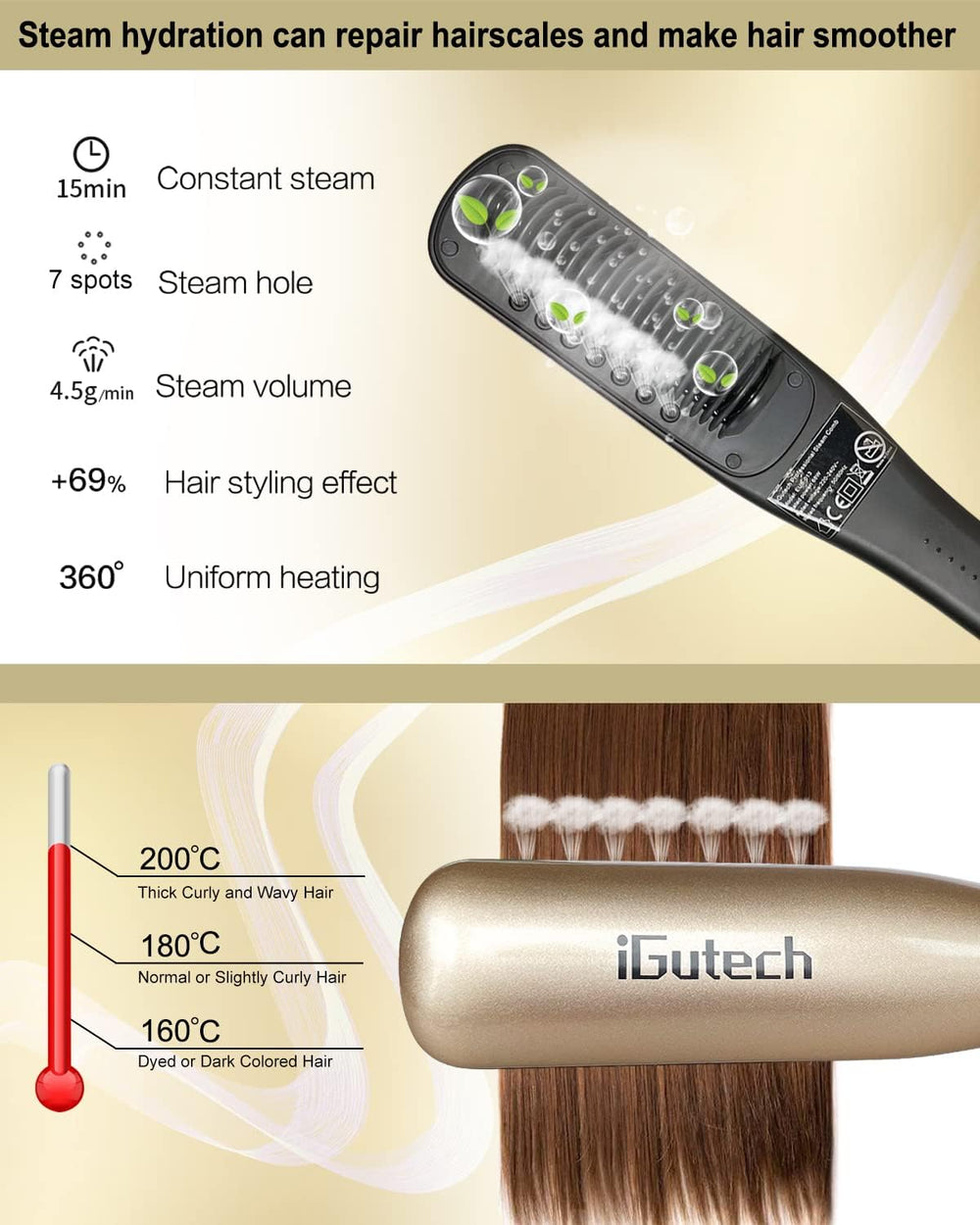 iGutech Dampfglätteisen,Dampf Haarglättbürste mit 3 Temperatureinstellungen, Glättbürste für profess