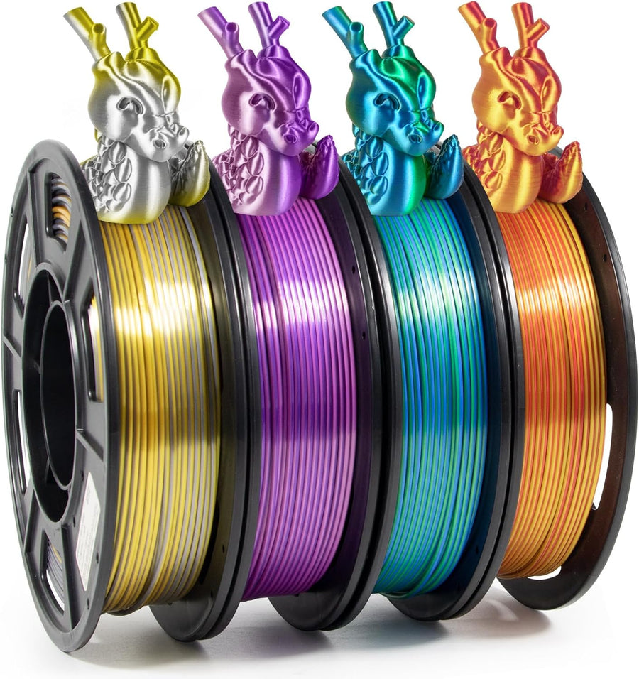 iSANMATE Silk PLA Filament 1.75 set, Dual Color Filament Silk PLA Gold Silber/Rosa Lila/Blau Grün/Go