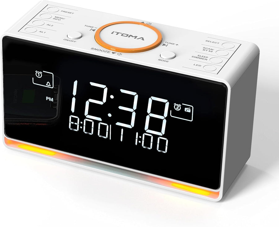 iTOMA Projektionswecker mit UKW-Radio, USB-Aufladung, 1.8'' LED-Anzeige, Nachtlicht, Doppelalarm, Sn