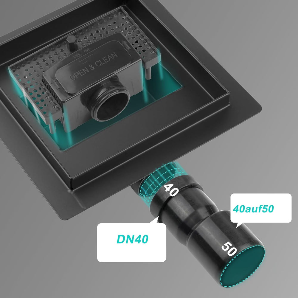 iYueMps Duschrinne Quadrat 15 x 15cm Edelstahl Bodenablauf 2-in-1 doppelseitig, Flieseneinsatz Ablau