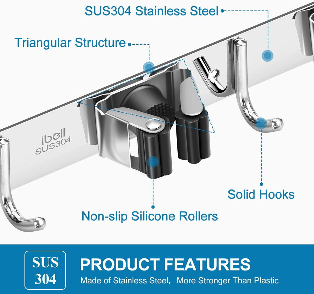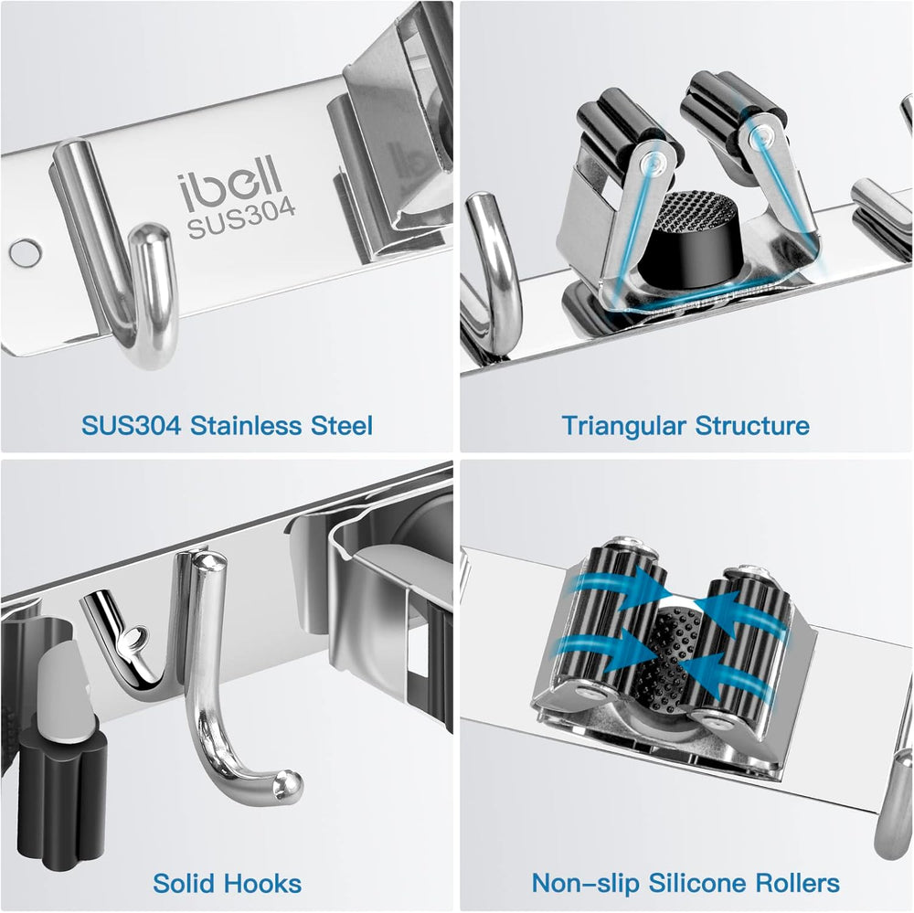 2 Stück Besenhalterung Wand, ibell Gerätehalter Edelstahl Gartengerätehalter Wandhalterung, Mopphalt