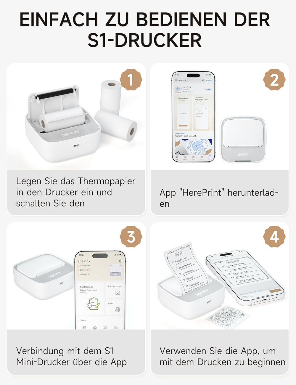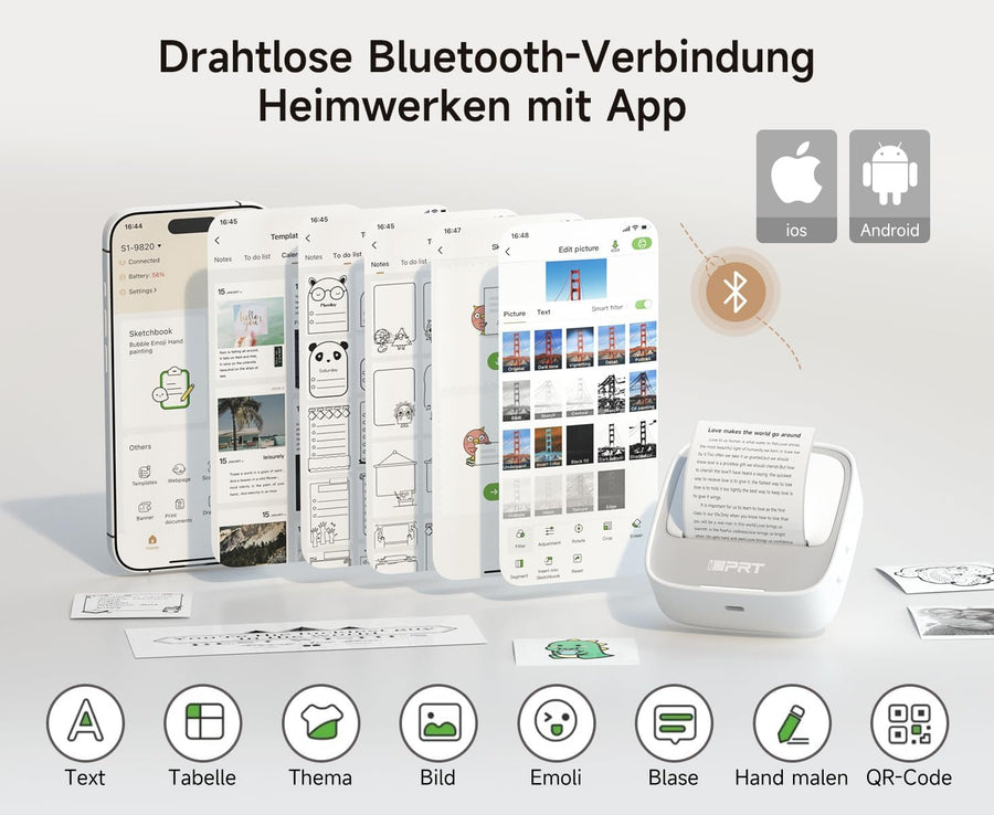 iDPRT Mini tragbarer Aufkleberdrucker, Thermodrucker für Studiennotizen, Bilder, DIY, Etiketten, mit
