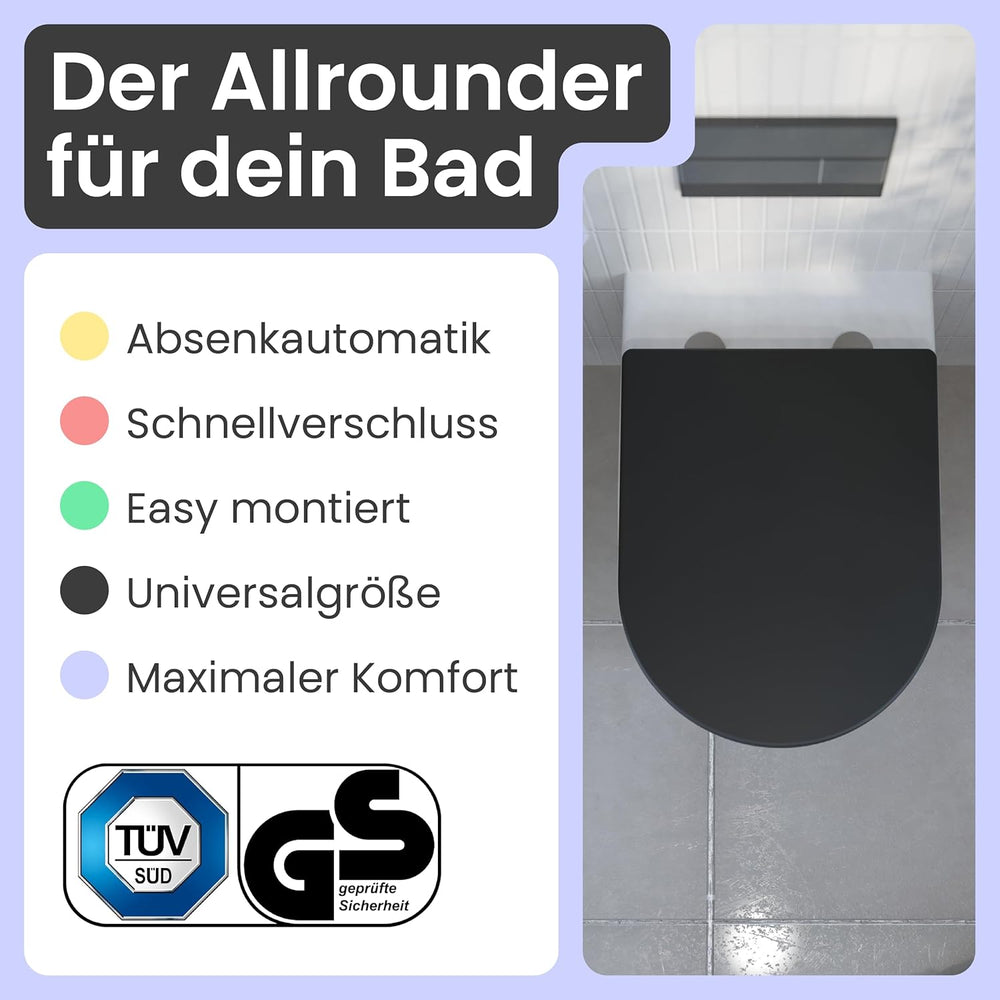 instmaier Helma | Toilettendeckel mit Absenkautomatik | Schwarz | TÜV geprüft | D-Form | Toilettensi