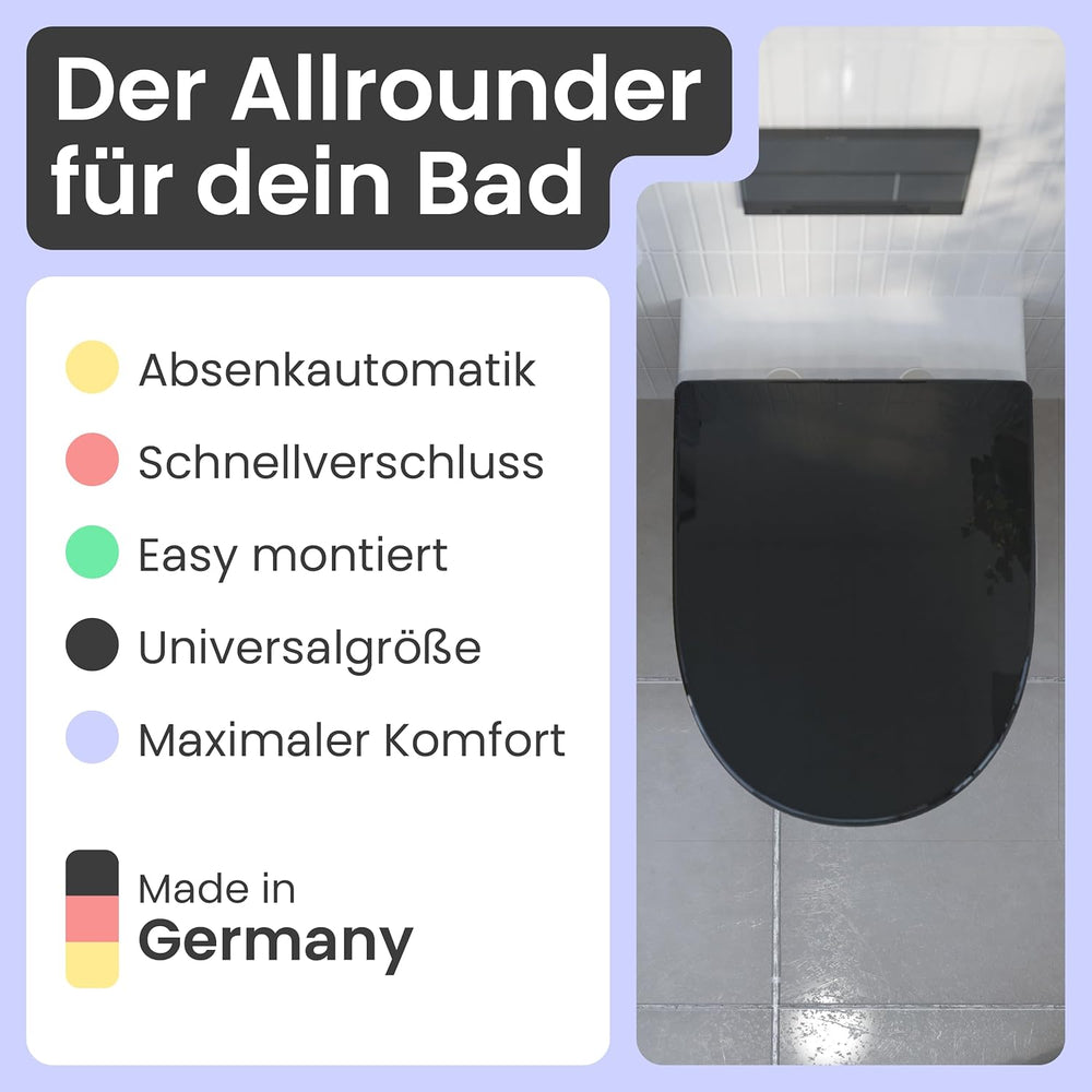 instmaier | D-Form | Toilettendeckel mit Absenkautomatik | schwarz glänzend | Made in Germany | Toil