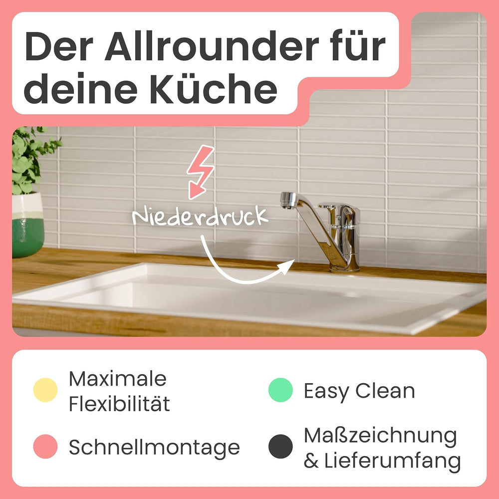 instmaier Elena | Niederdruck Küchenarmatur mit Geschirrbrause | Chrom |Wasserhahn Küche | ausziehba