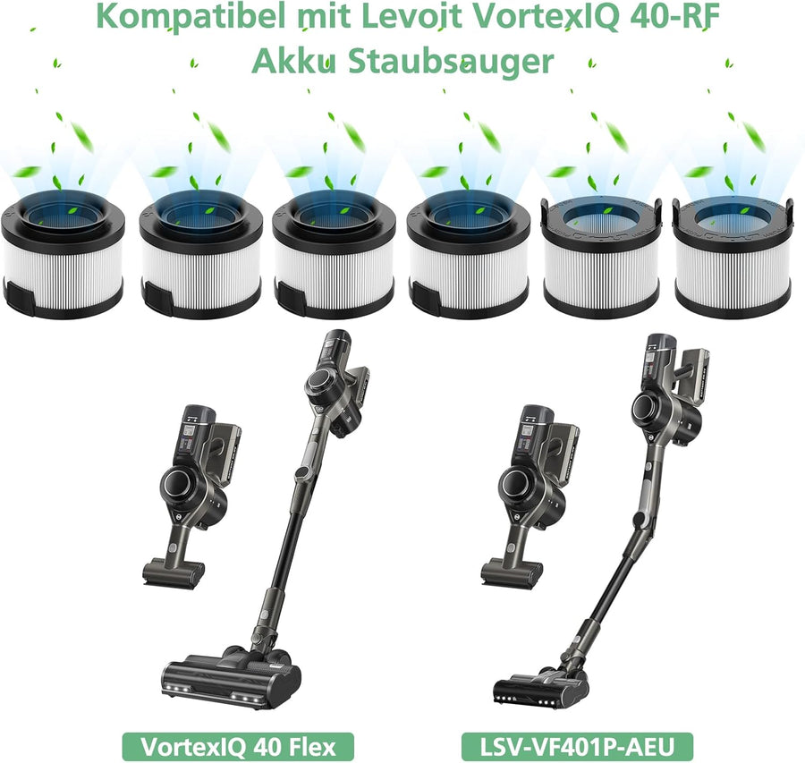 6 Stück VortexIQ 40 Filter für Levoit VortexIQ 40-RF/VortexIQ 40 Flex/LSV-VF401P-AEU Akku Staubsauge