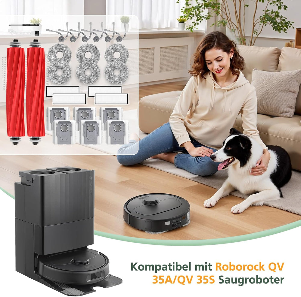 26 Stück Zubehör Ersatzteile für Roborock QV 35A/QV 35S Saugroboter, 2 Rollenbürste, 4 HEPA-Filter,